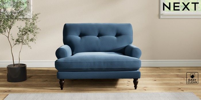 7.2.10 Erin Buttoned Back Deep Relaxed Sit Snuggle Plush Velvet Easy Clean Airforce Blue High Classic Turned - Dark | Made Click here to use our website with more accessibility support, for example screen readers