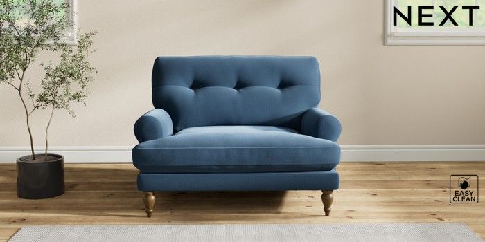 7.2.10 Erin Buttoned Back Deep Relaxed Sit Snuggle Plush Velvet Easy Clean Airforce Blue High Classic Turned - Mid | Made Click here to use our website with more accessibility support, for example screen readers