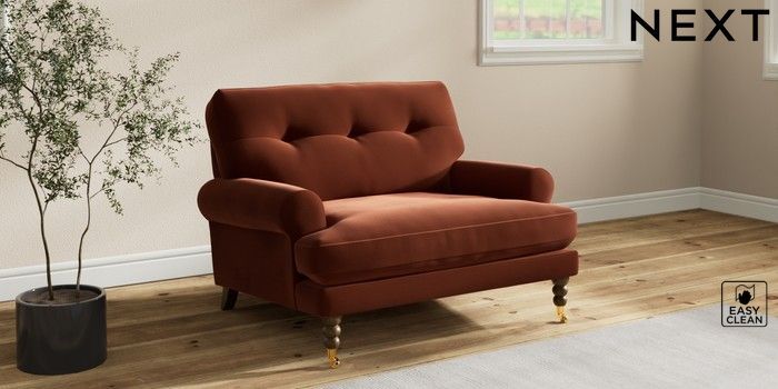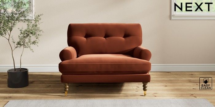 7.2.10 Erin Buttoned Back Deep Relaxed Sit Snuggle Plush Velvet Easy Clean Ginger Orange High Classic Turned Brass Castor - Mid | Made Click here to use our website with more accessibility support, for example screen readers