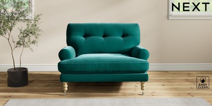 7.2.10 Erin Buttoned Back Deep Relaxed Sit Snuggle Plush Velvet Easy Clean Juniper Green High Classic Turned Chrome Castor - Light | Made Click here to use our website with more accessibility support, for example screen readers