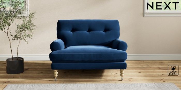 7.2.10 Erin Buttoned Back Deep Relaxed Sit Snuggle Plush Velvet Easy Clean Navy Blue High Classic Turned Chrome Castor - Light | Made Click here to use our website with more accessibility support, for example screen readers