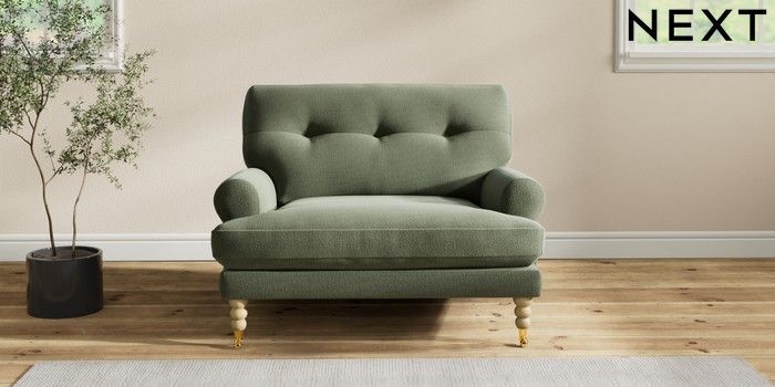 7.2.10 Erin Buttoned Back Deep Relaxed Sit Snuggle Relaxed Linen Look Dark Green High Classic Turned Brass Castor - Light | Made Click here to use our website with more accessibility support, for example screen readers