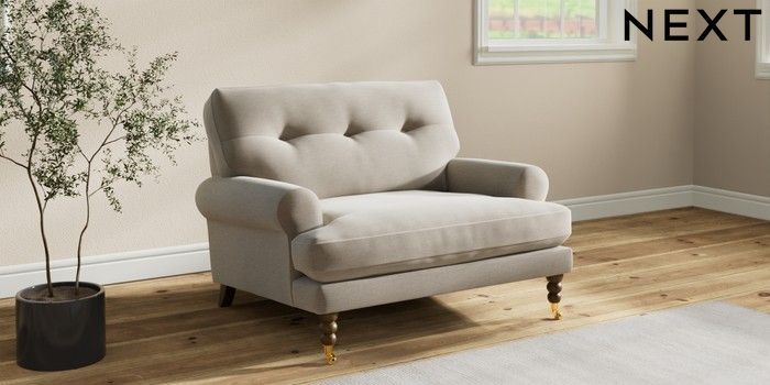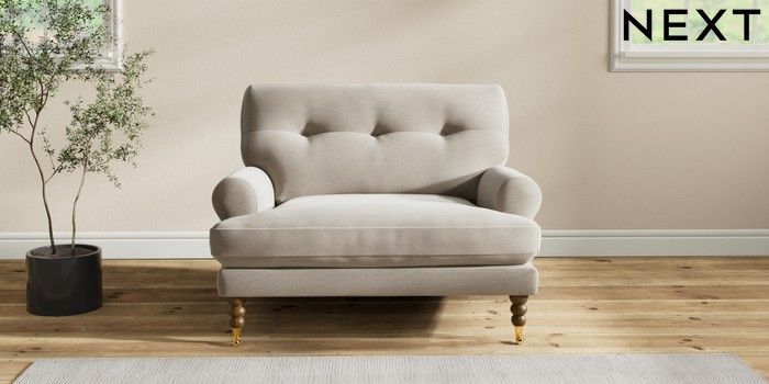 7.2.10 Erin Buttoned Back Deep Relaxed Sit Snuggle Ripple Chenille Light Natural High Classic Turned Brass Castor - Mid | Made Click here to use our website with more accessibility support, for example screen readers