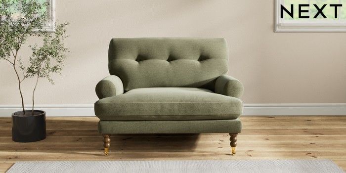 7.2.10 Erin Buttoned Back Deep Relaxed Sit Snuggle Ripple Chenille Mid Moss Green High Classic Turned Brass Castor - Mid | Made Click here to use our website with more accessibility support, for example screen readers