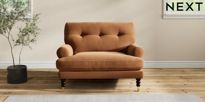 7.2.10 Erin Buttoned Back Deep Relaxed Sit Snuggle Ripple Chenille Mid Rust Brown High Classic Turned Brass Castor - Dark | Made Click here to use our website with more accessibility support, for example screen readers