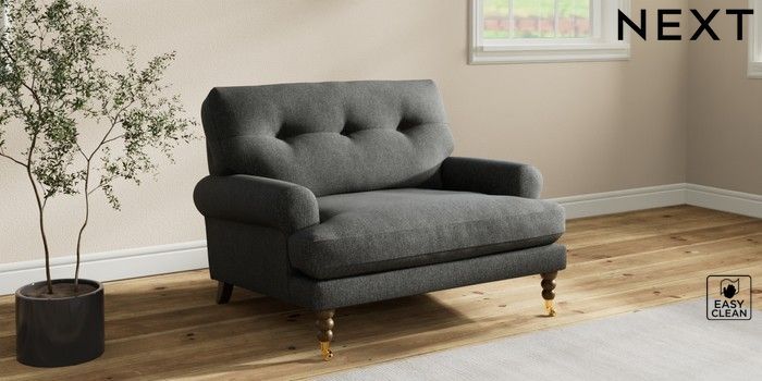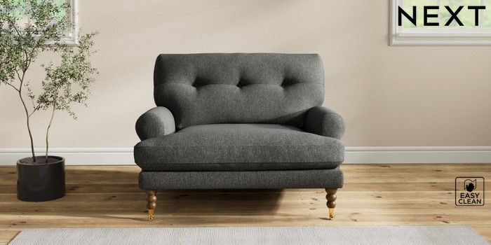 7.2.10 Erin Buttoned Back Deep Relaxed Sit Snuggle Tweedy Blend Easy Clean Charcoal Grey High Classic Turned Brass Castor - Mid | Made Click here to use our website with more accessibility support, for example screen readers