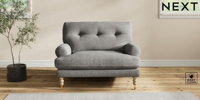 7.2.10 Erin Buttoned Back Deep Relaxed Sit Snuggle Tweedy Blend Easy Clean Dark Grey High Classic Turned Brass Castor - Light | Made Click here to use our website with more accessibility support, for example screen readers