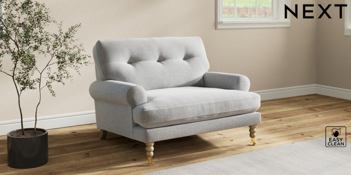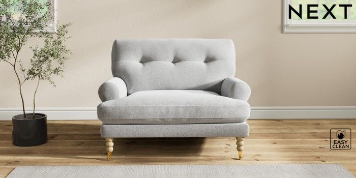 7.2.10 Erin Buttoned Back Deep Relaxed Sit Snuggle Tweedy Blend Easy Clean Light Silver Grey High Classic Turned Brass Castor - Light | Made Click here to use our website with more accessibility support, for example screen readers