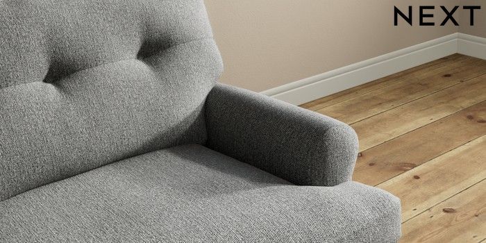 7.2.10 Erin Buttoned Back Deep Relaxed Sit Snuggle Tweedy Chenille Dark Grey High Classic Turned Brass Castor - Mid | Made Click here to use our website with more accessibility support, for example screen readers