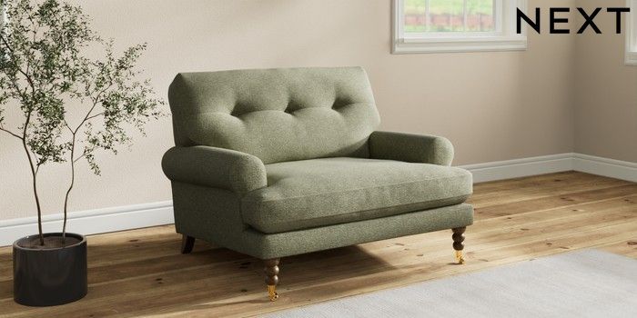 7.2.10 Erin Buttoned Back Deep Relaxed Sit Snuggle Tweedy Chenille Mid Moss Green High Classic Turned Brass Castor - Mid | Made Click here to use our website with more accessibility support, for example screen readers