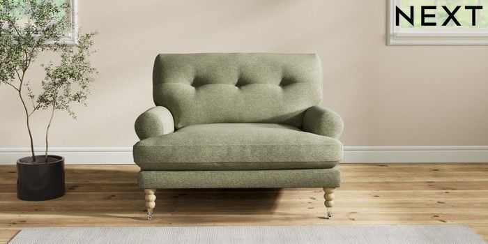 7.2.10 Erin Buttoned Back Deep Relaxed Sit Snuggle Tweedy Chenille Mid Moss Green High Classic Turned Chrome Castor - Light | Made Click here to use our website with more accessibility support, for example screen readers