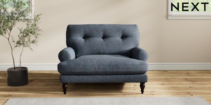 7.2.10 Erin Buttoned Back Deep Relaxed Sit Snuggle Tweedy Chenille Navy Blue High Classic Turned - Dark | Made Click here to use our website with more accessibility support, for example screen readers