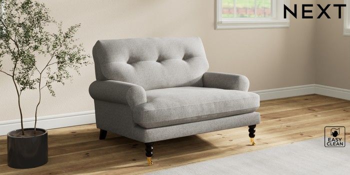 7.2.10 Erin Buttoned Back Deep Relaxed Sit Snuggle Woven Chenille Easy Clean Light Grey High Classic Turned Brass Castor - Dark | Made Click here to use our website with more accessibility support, for example screen readers