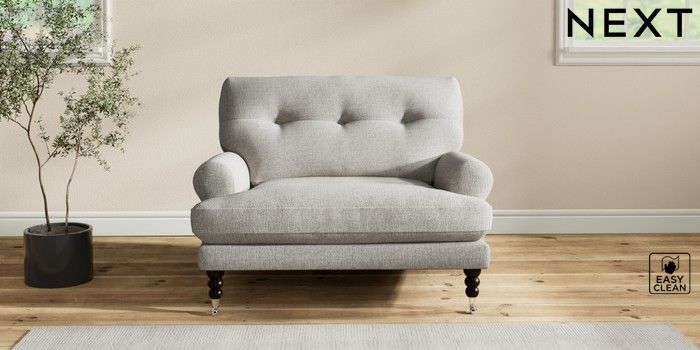 7.2.10 Erin Buttoned Back Deep Relaxed Sit Snuggle Woven Chenille Easy Clean Light Grey High Classic Turned Chrome Castor - Dark | Made Click here to use our website with more accessibility support, for example screen readers
