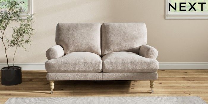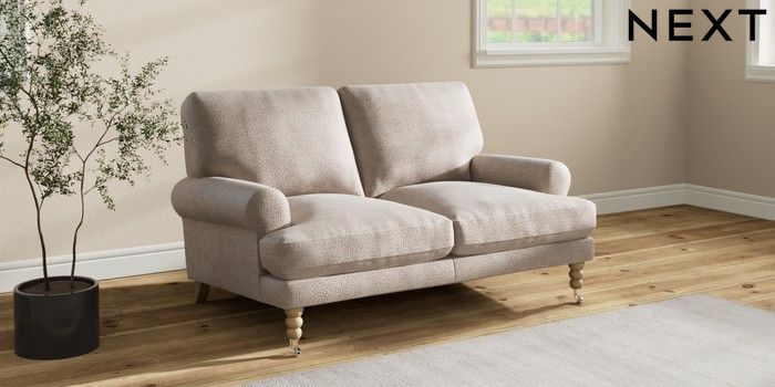 7.2.10 Erin Deep Relaxed Sit 2 Seater Small Sofa Boucle Chenille Light Natural High Classic Turned Chrome Castor - Light | Made Click here to use our website with more accessibility support, for example screen readers