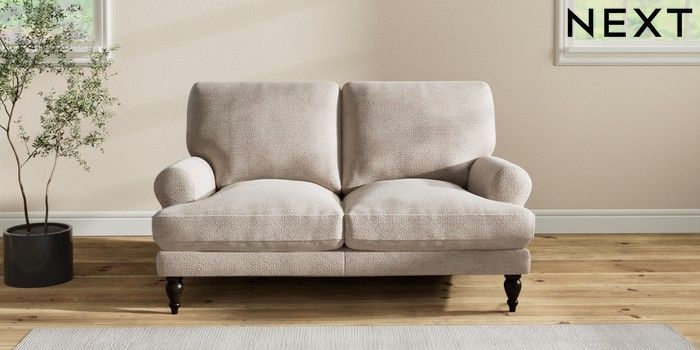 7.2.10 Erin Deep Relaxed Sit 2 Seater Small Sofa Boucle Chenille Light Natural High Classic Turned - Dark | Made Click here to use our website with more accessibility support, for example screen readers