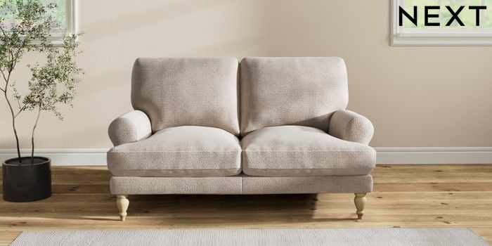 7.2.10 Erin Deep Relaxed Sit 2 Seater Small Sofa Boucle Chenille Light Natural High Classic Turned - Light | Made Click here to use our website with more accessibility support, for example screen readers