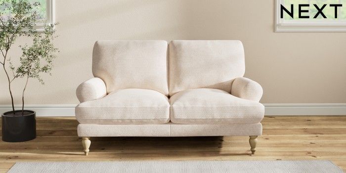 7.2.10 Erin Deep Relaxed Sit 2 Seater Small Sofa Boucle Chenille Oyster High Classic Turned - Light | Made Click here to use our website with more accessibility support, for example screen readers