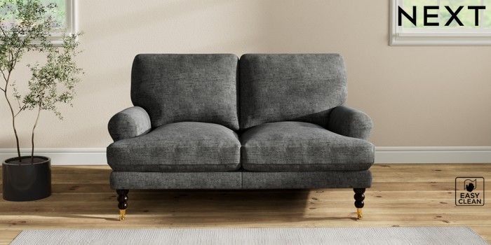 7.2.10 Erin Deep Relaxed Sit 2 Seater Small Sofa Boucle Weave Easy Clean Charcoal Grey High Classic Turned Brass Castor - Dark | Made Click here to use our website with more accessibility support, for example screen readers