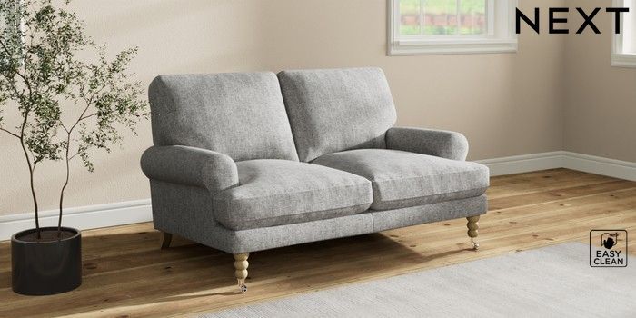 7.2.10 Erin Deep Relaxed Sit 2 Seater Small Sofa Chunky Boucle Easy Clean Light Grey High Classic Turned Chrome Castor - Light | Made Click here to use our website with more accessibility support, for example screen readers