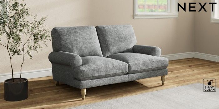7.2.10 Erin Deep Relaxed Sit 2 Seater Small Sofa Chunky Boucle Easy Clean Mid Grey High Classic Turned - Light | Made Click here to use our website with more accessibility support, for example screen readers