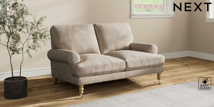 7.2.10 Erin Deep Relaxed Sit 2 Seater Small Sofa Chunky Boucle Easy Clean Mid Natural High Classic Turned Chrome Castor - Light | Made Click here to use our website with more accessibility support, for example screen readers