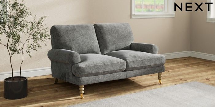 7.2.10 Erin Deep Relaxed Sit 2 Seater Small Sofa Chunky Chenille Dark Grey High Classic Turned Brass Castor - Light | Made Click here to use our website with more accessibility support, for example screen readers