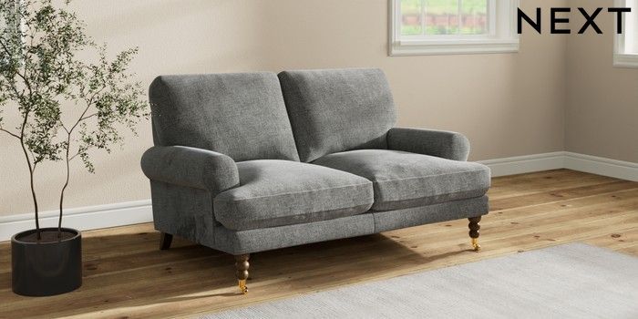 7.2.10 Erin Deep Relaxed Sit 2 Seater Small Sofa Chunky Chenille Dark Grey High Classic Turned Brass Castor - Mid | Made Click here to use our website with more accessibility support, for example screen readers