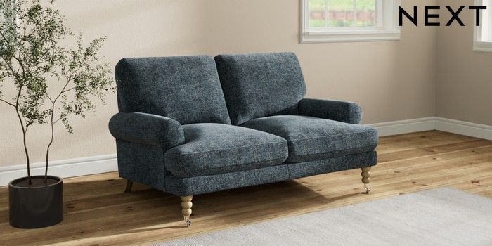 7.2.10 Erin Deep Relaxed Sit 2 Seater Small Sofa Chunky Chenille Dark Navy Blue High Classic Turned Chrome Castor - Light | Made Click here to use our website with more accessibility support, for example screen readers