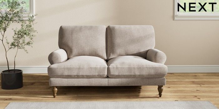 7.2.10 Erin Deep Relaxed Sit 2 Seater Small Sofa Chunky Chenille Light Dove High Classic Turned - Mid | Made Click here to use our website with more accessibility support, for example screen readers