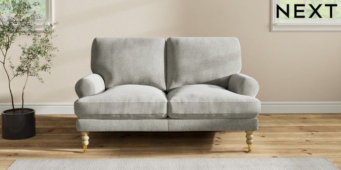 7.2.10 Erin Deep Relaxed Sit 2 Seater Small Sofa Chunky Chenille Light Grey High Classic Turned Brass Castor - Light | Made Click here to use our website with more accessibility support, for example screen readers
