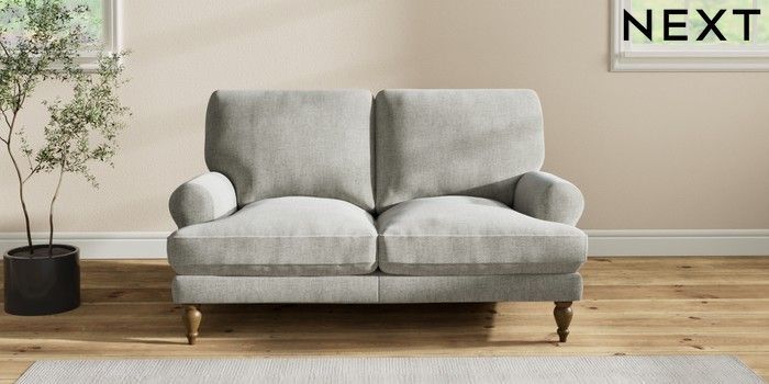 7.2.10 Erin Deep Relaxed Sit 2 Seater Small Sofa Chunky Chenille Light Grey High Classic Turned - Mid | Made Click here to use our website with more accessibility support, for example screen readers