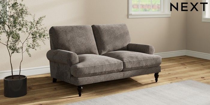 7.2.10 Erin Deep Relaxed Sit 2 Seater Small Sofa Chunky Chenille Mink Brown High Classic Turned - Dark | Made Click here to use our website with more accessibility support, for example screen readers