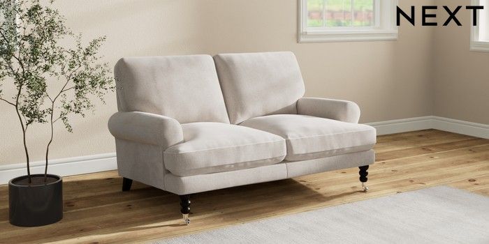 7.2.10 Erin Deep Relaxed Sit 2 Seater Small Sofa Chunky Chenille Oyster High Classic Turned Chrome Castor - Dark | Made Click here to use our website with more accessibility support, for example screen readers