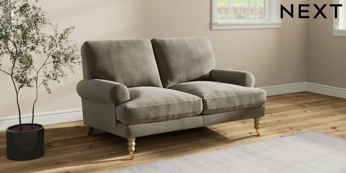 7.2.10 Erin Deep Relaxed Sit 2 Seater Small Sofa Chunky Marl Light Olive Green High Classic Turned Brass Castor - Light | Made Click here to use our website with more accessibility support, for example screen readers