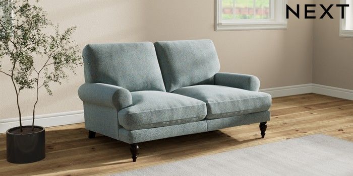 7.2.10 Erin Deep Relaxed Sit 2 Seater Small Sofa Chunky Marl Mid Blue High Classic Turned - Dark | Made Click here to use our website with more accessibility support, for example screen readers