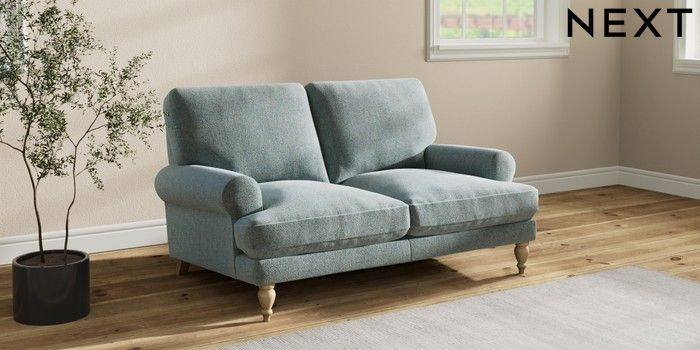 7.2.10 Erin Deep Relaxed Sit 2 Seater Small Sofa Chunky Marl Mid Blue High Classic Turned - Light | Made Click here to use our website with more accessibility support, for example screen readers