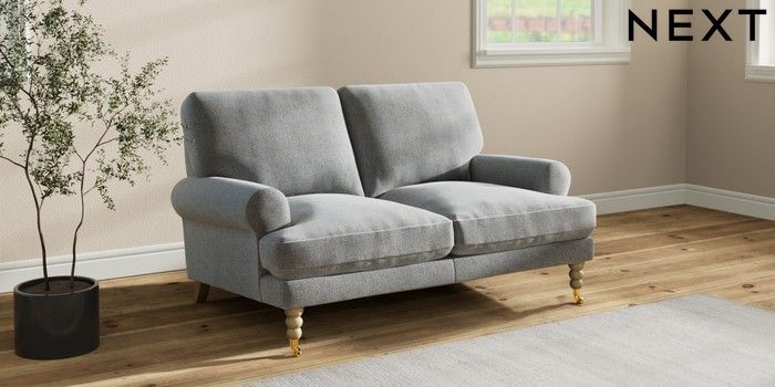 7.2.10 Erin Deep Relaxed Sit 2 Seater Small Sofa Chunky Marl Mid Grey High Classic Turned Brass Castor - Light | Made Click here to use our website with more accessibility support, for example screen readers