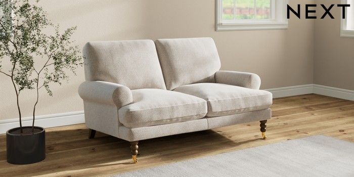 7.2.10 Erin Deep Relaxed Sit 2 Seater Small Sofa Chunky Marl Oyster High Classic Turned Brass Castor - Mid | Made Click here to use our website with more accessibility support, for example screen readers