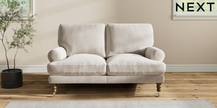 7.2.10 Erin Deep Relaxed Sit 2 Seater Small Sofa Chunky Marl Oyster High Classic Turned Chrome Castor - Mid | Made Click here to use our website with more accessibility support, for example screen readers