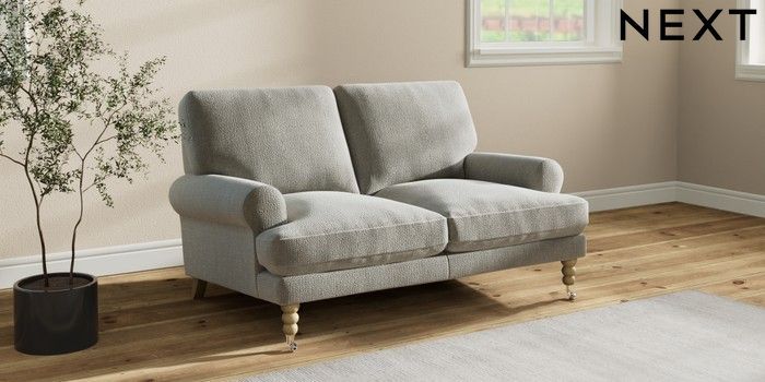 7.2.10 Erin Deep Relaxed Sit 2 Seater Small Sofa Chunky Texture Dove High Classic Turned Chrome Castor - Light | Made Click here to use our website with more accessibility support, for example screen readers