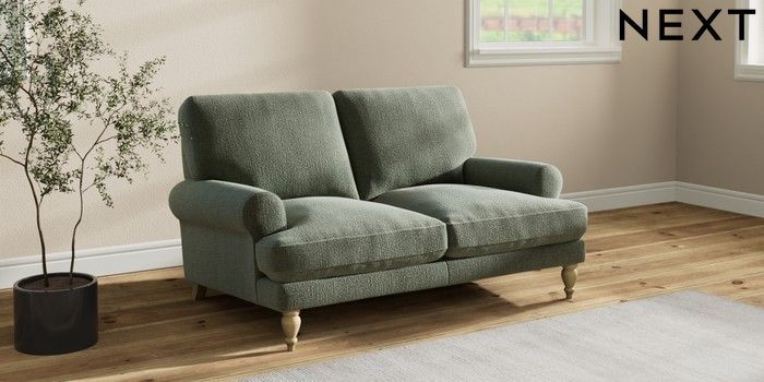 7.2.10 Erin Deep Relaxed Sit 2 Seater Small Sofa Chunky Texture Mid Forest Green High Classic Turned - Light | Made Click here to use our website with more accessibility support, for example screen readers