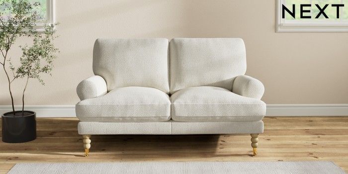7.2.10 Erin Deep Relaxed Sit 2 Seater Small Sofa Chunky Texture Oyster High Classic Turned Brass Castor - Light | Made Click here to use our website with more accessibility support, for example screen readers