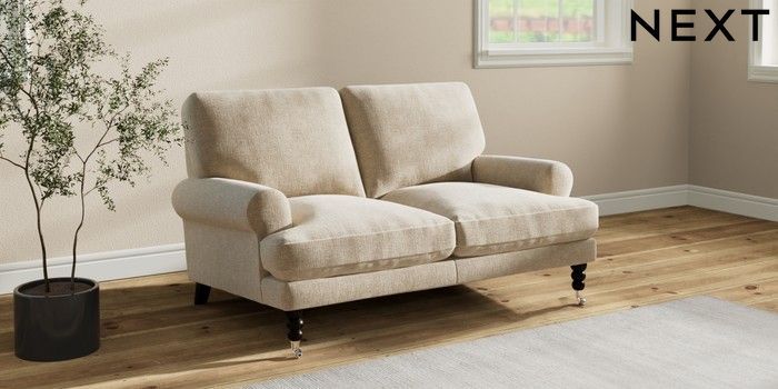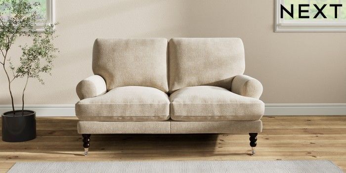 7.2.10 Erin Deep Relaxed Sit 2 Seater Small Sofa Chunky Weave Cream High Classic Turned Chrome Castor - Dark | Made Click here to use our website with more accessibility support, for example screen readers