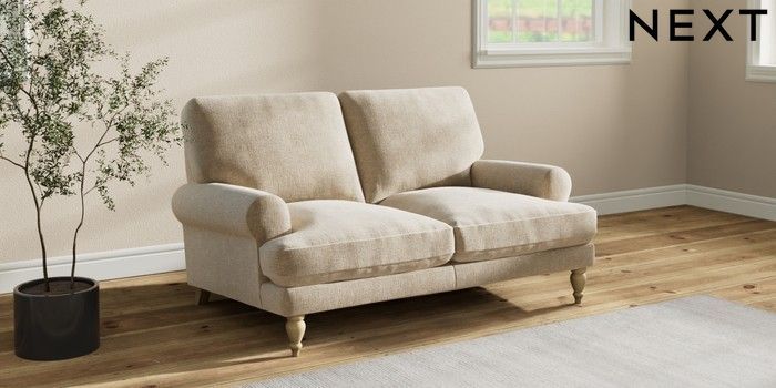 7.2.10 Erin Deep Relaxed Sit 2 Seater Small Sofa Chunky Weave Cream High Classic Turned - Light | Made Click here to use our website with more accessibility support, for example screen readers