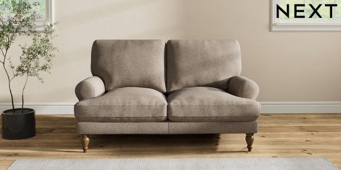7.2.10 Erin Deep Relaxed Sit 2 Seater Small Sofa Chunky Weave Dark Natural High Classic Turned - Mid | Made Click here to use our website with more accessibility support, for example screen readers