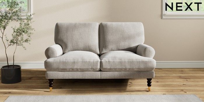 7.2.10 Erin Deep Relaxed Sit 2 Seater Small Sofa Chunky Weave Dove Grey High Classic Turned Brass Castor - Dark | Made Click here to use our website with more accessibility support, for example screen readers