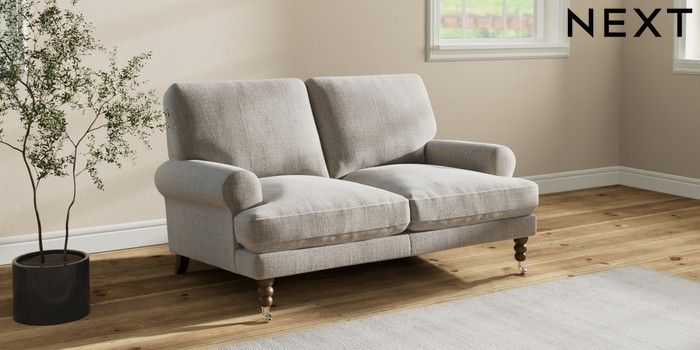7.2.10 Erin Deep Relaxed Sit 2 Seater Small Sofa Chunky Weave Dove Grey High Classic Turned Chrome Castor - Mid | Made Click here to use our website with more accessibility support, for example screen readers
