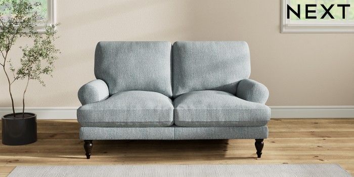 7.2.10 Erin Deep Relaxed Sit 2 Seater Small Sofa Chunky Weave Mid Blue High Classic Turned - Dark | Made Click here to use our website with more accessibility support, for example screen readers