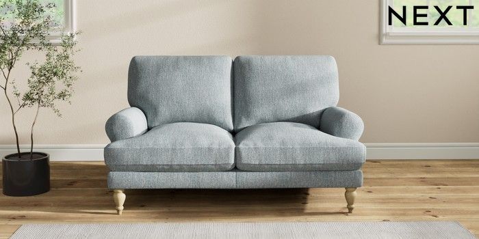 7.2.10 Erin Deep Relaxed Sit 2 Seater Small Sofa Chunky Weave Mid Blue High Classic Turned - Light | Made Click here to use our website with more accessibility support, for example screen readers